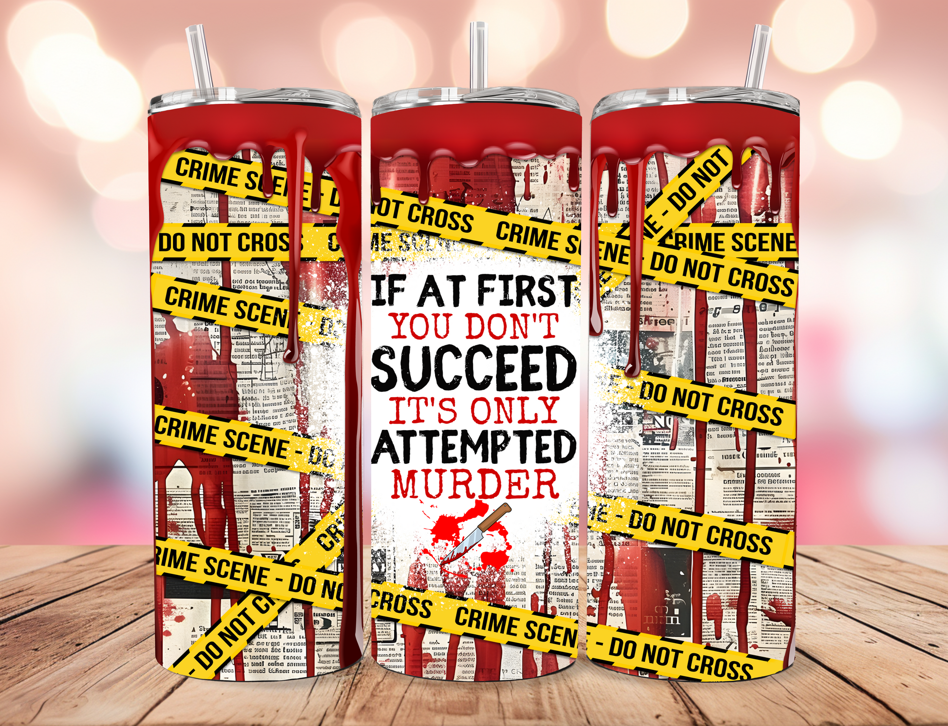 Add a dash of dark humor to your hydration with our 600ml “Attempted Murder” Tumbler! Especially for those queens who love True Crime and who should not be engaged before your first coffee in the morning, this tumbler features the hilariously sinister quote, “If at first you don’t succeed, it’s only attempted murder,”.