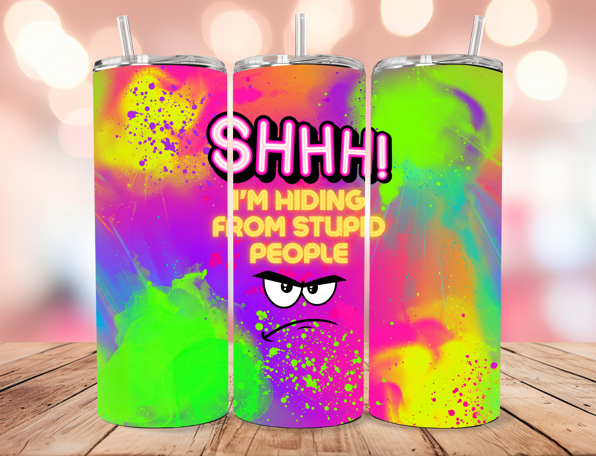 Embrace your need for personal space with our 20oz “Shhh, I’m Hiding From Stupid People” Stainless Steel Tumbler! Featuring a bold and vibrant paint splatter background, this tumbler is as unique as your sense of humor. The cheeky quote “Shhh, I’m Hiding From Stupid People” is the perfect way to express your desire for peace and quiet, while the striking design ensures you stand out in the most fabulous way possible.