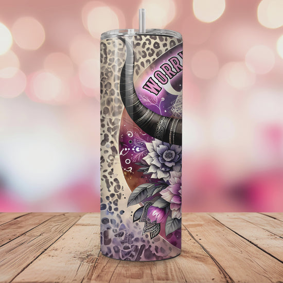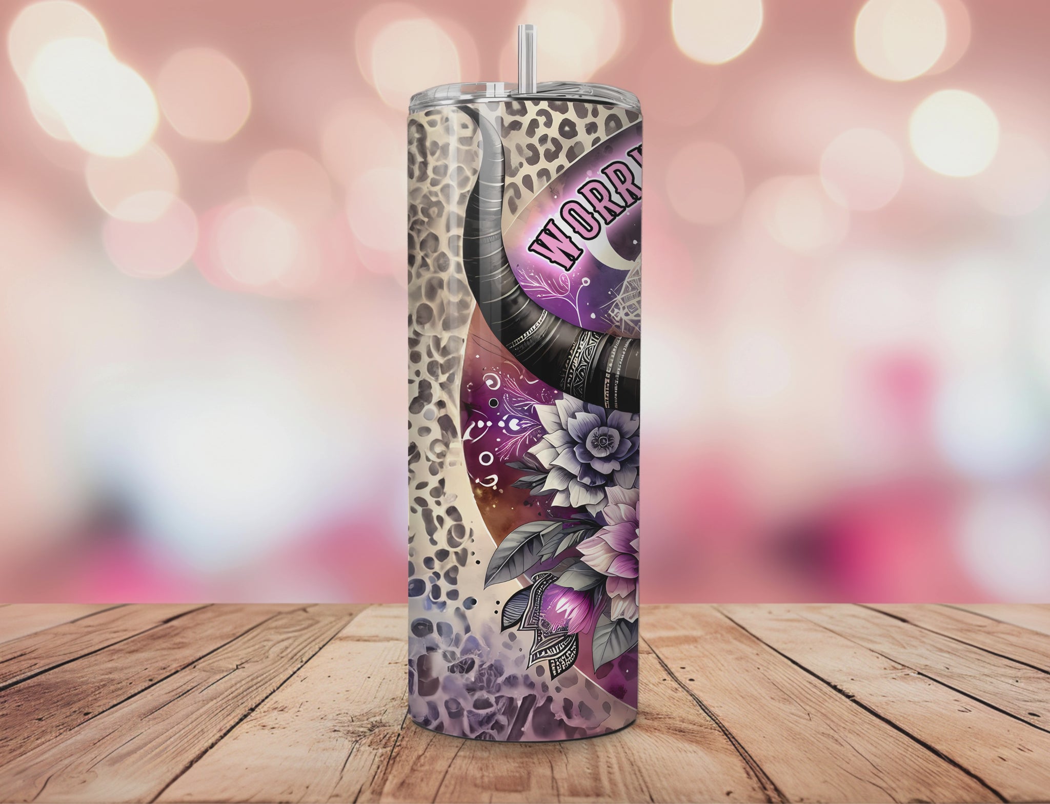 Bring bold, boho vibes to your daily routine with our 20oz “Worry Less, Live More” Stainless Steel Tumbler! Featuring an intricate design of a horned cow skull adorned with mandalas, flowers, and animal print accents, this tumbler perfectly blends rustic charm with modern style. The inspiring quote “Worry Less, Live More” serves as a daily reminder to embrace life’s beauty and let go of what holds you back.